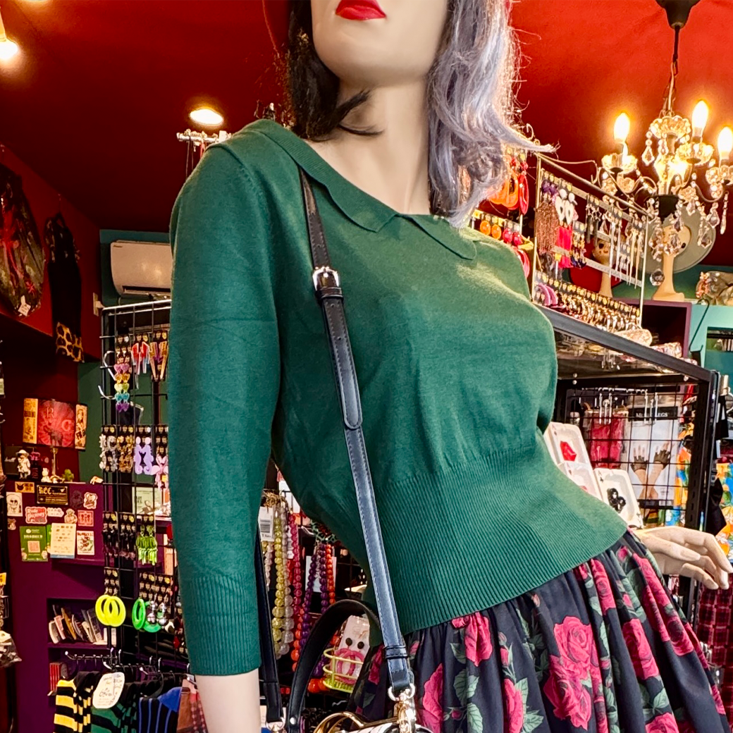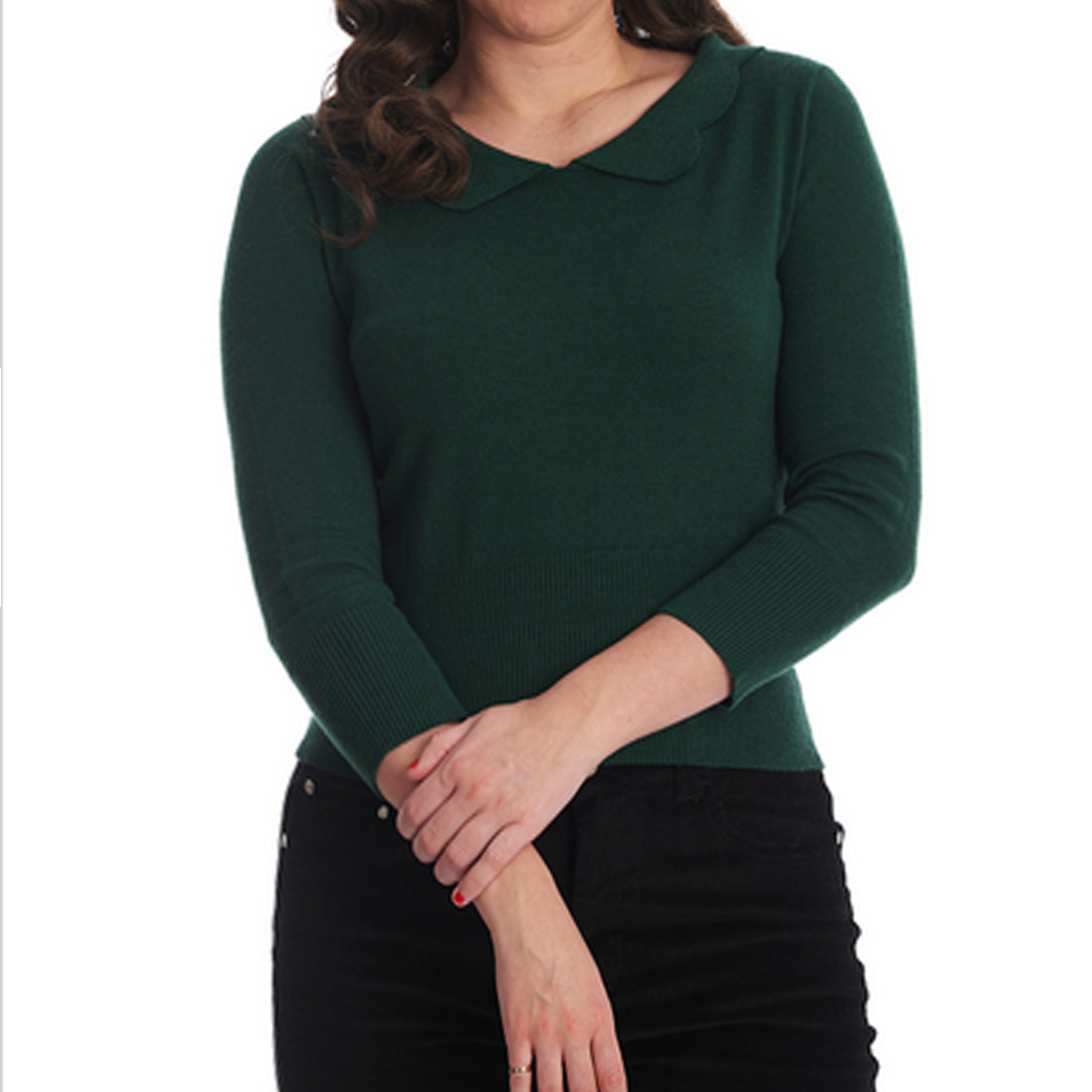 【BANNED】SWEET SCALLOP JUMPER 襟付き七分袖ニット ダークグリーン
