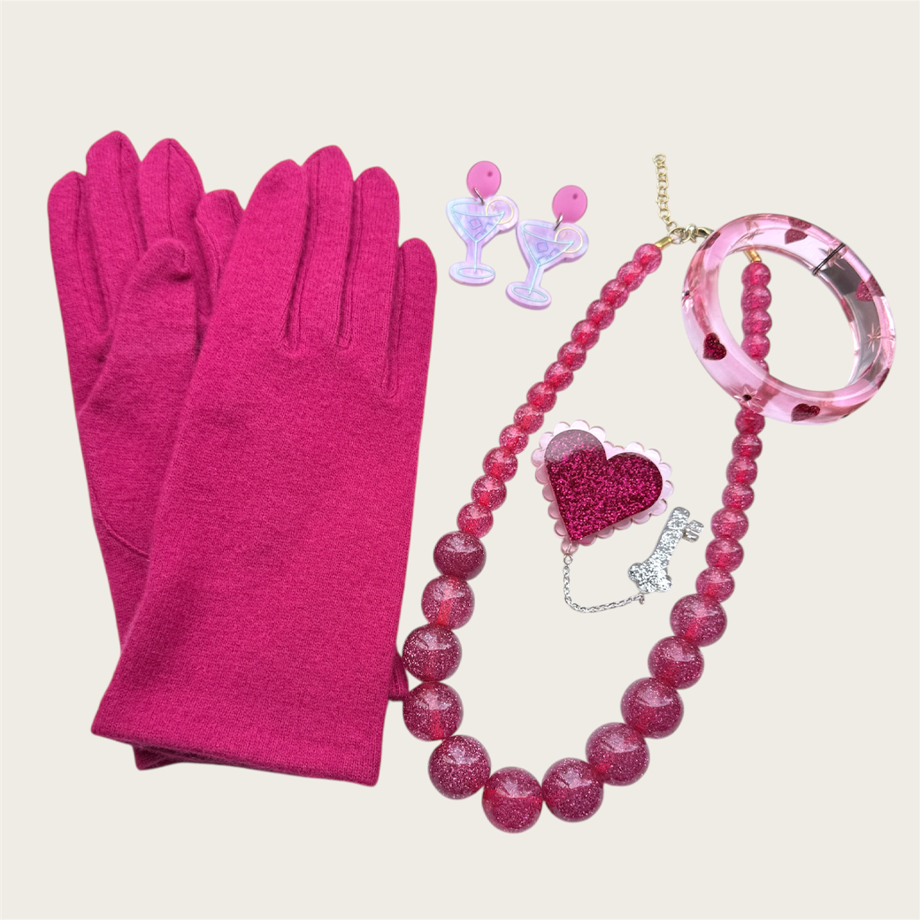 【VALLERY'S SELECT】Retro Knit Glove -Rose Pink ネコポス対応