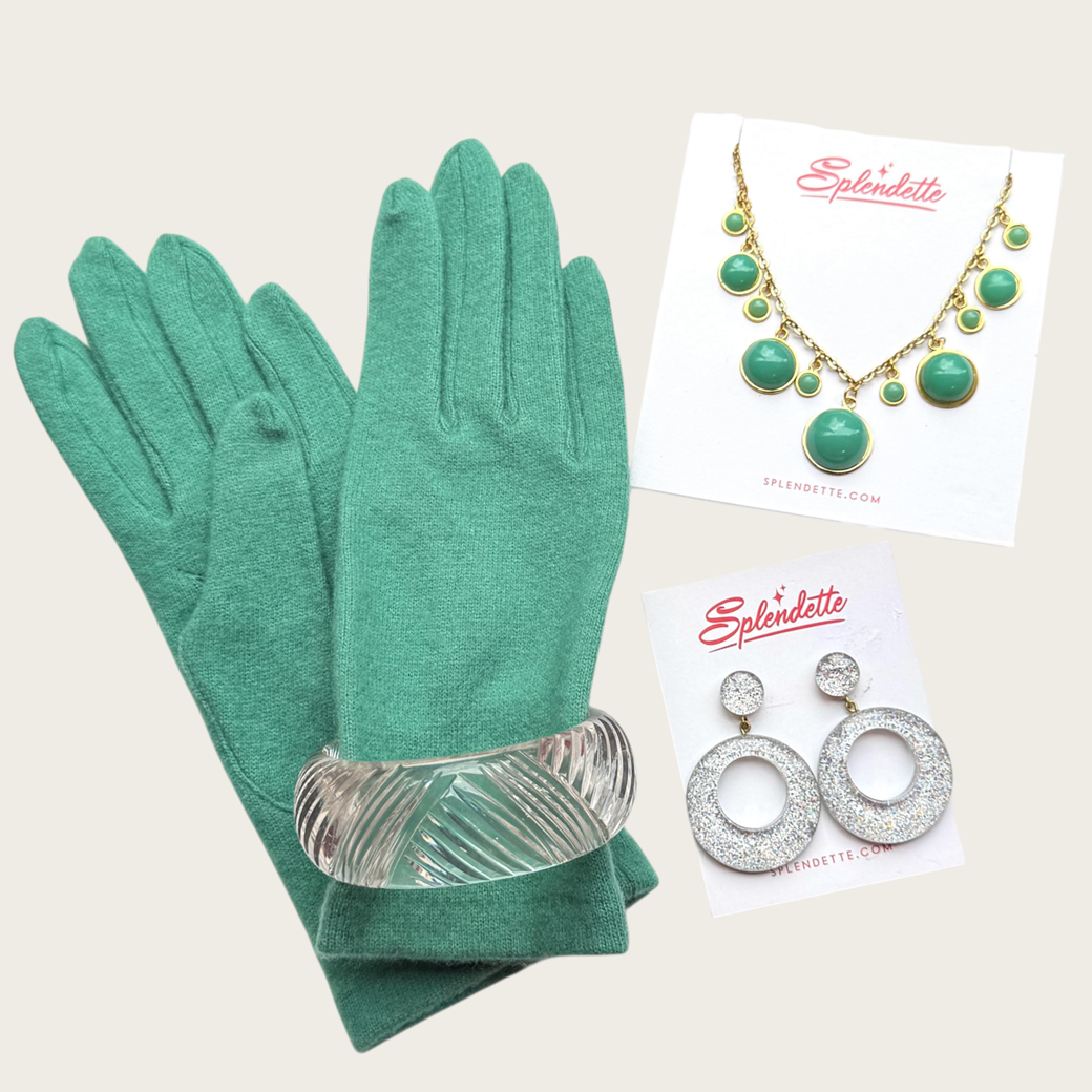 【VALLERY'S SELECT】Retro Knit Glove -Dusty Mint ネコポス対応