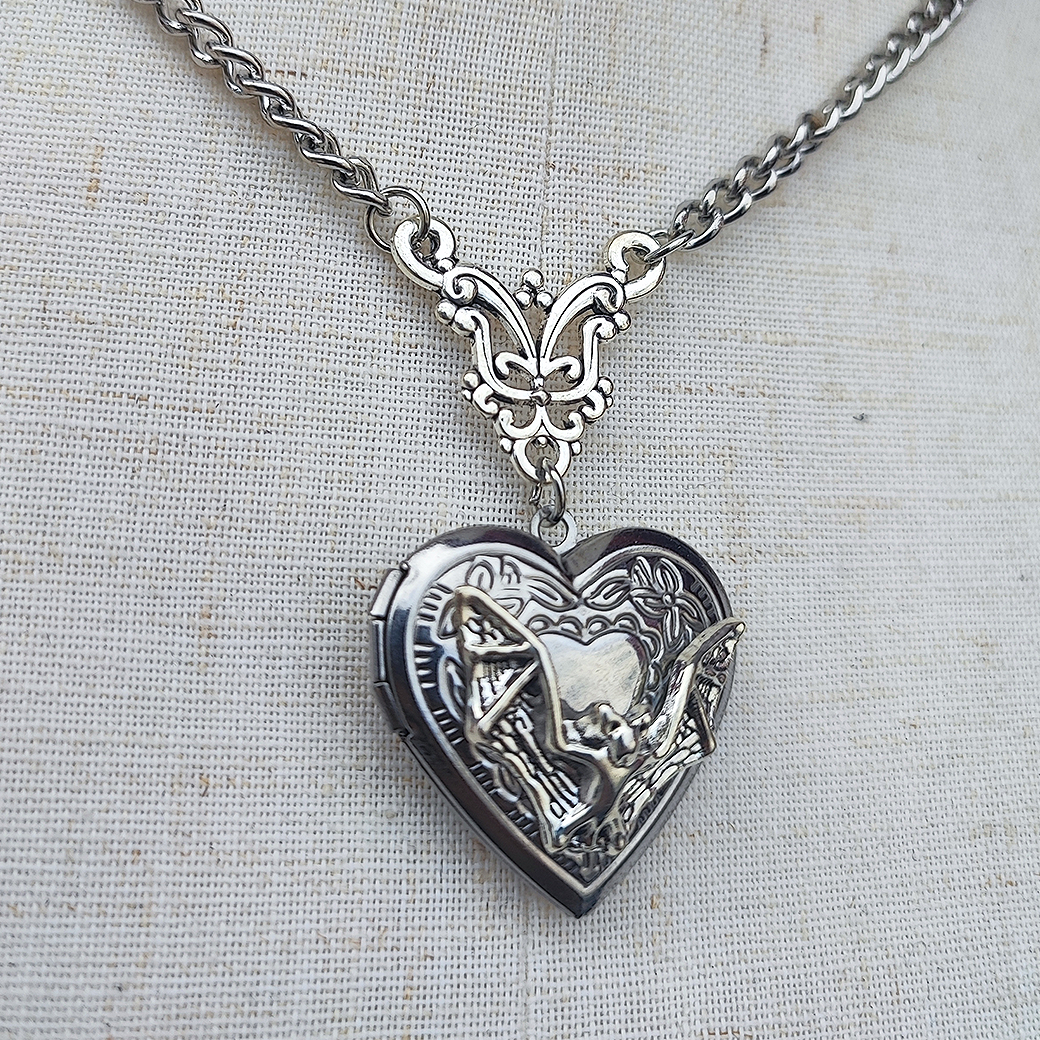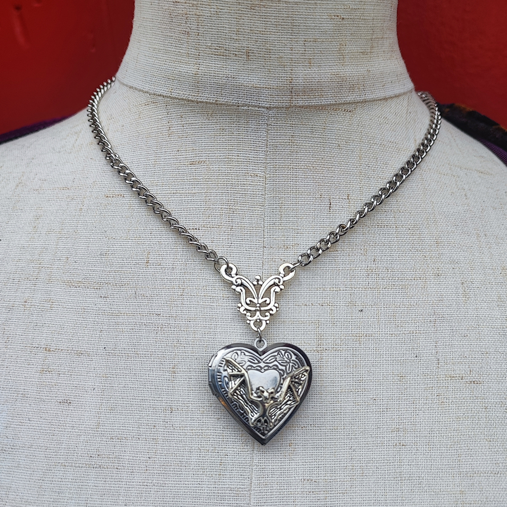 妖しく美しい闇夜に舞う蝙蝠のハートペンダント