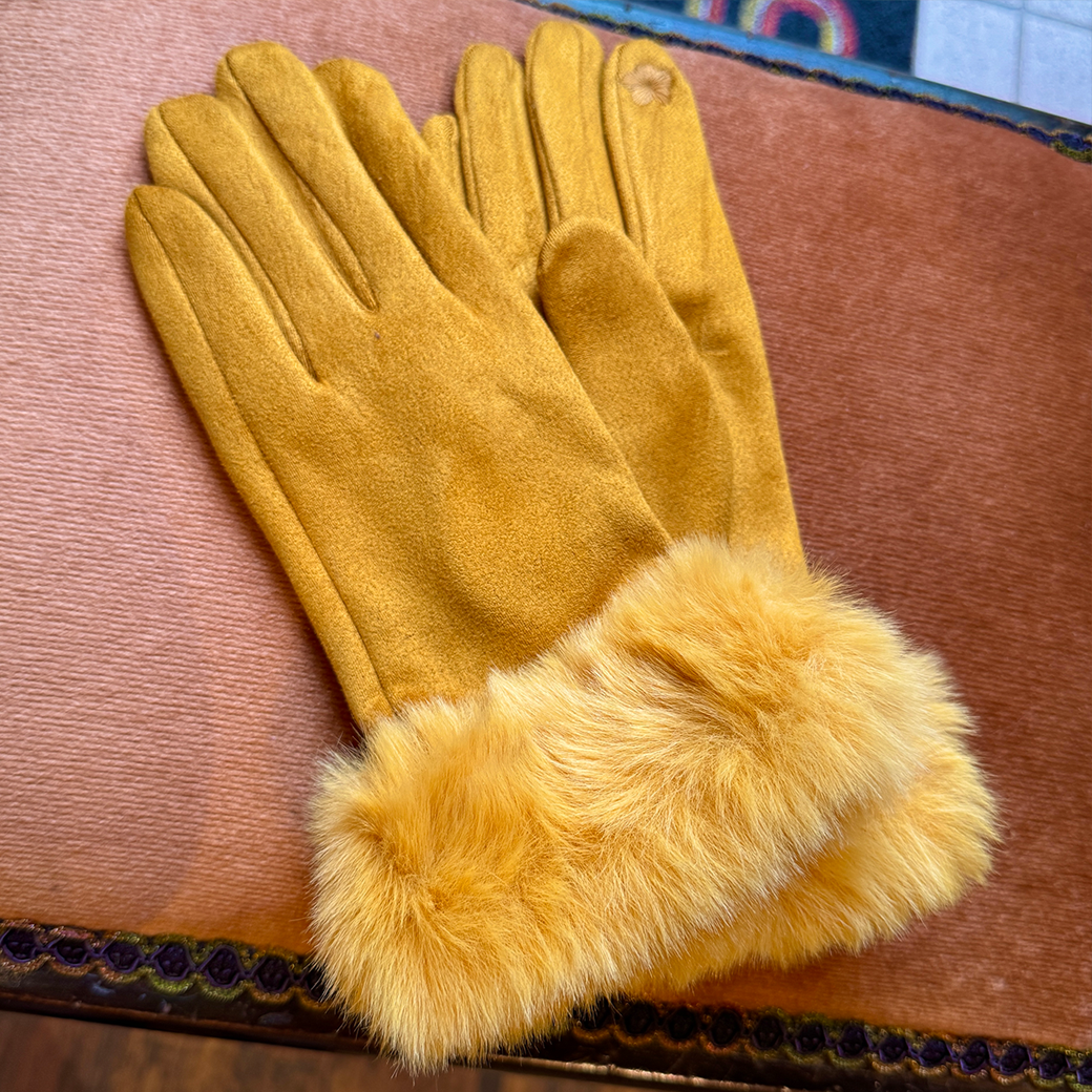 【VALLERY'S SELECT】Faux Fur Retro Knit Glove -Yellow Gold