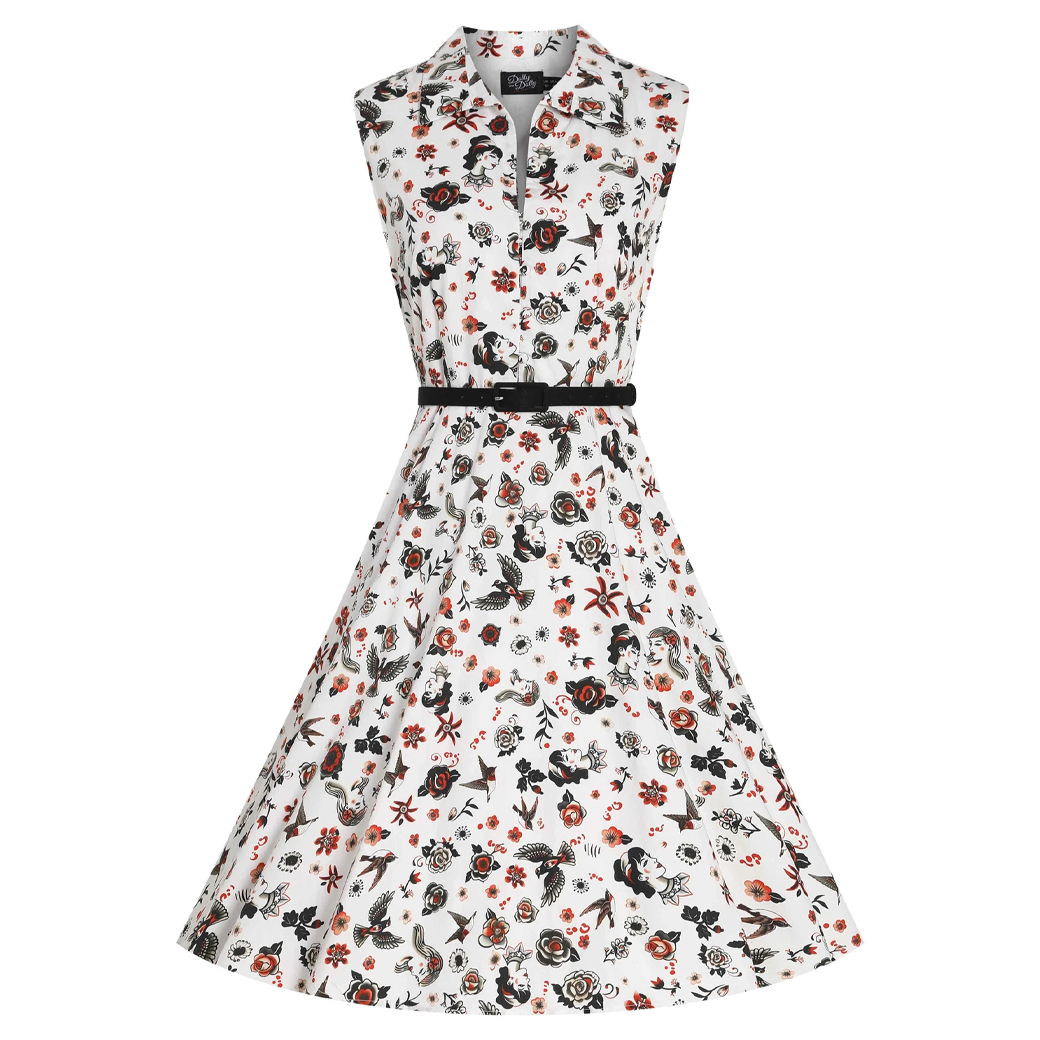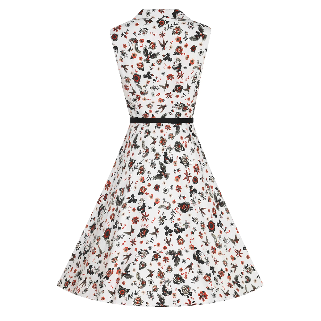 【DOLLY and DOTTY】Vintage Tattoo Print Poppy Shirt Dress -size UK10