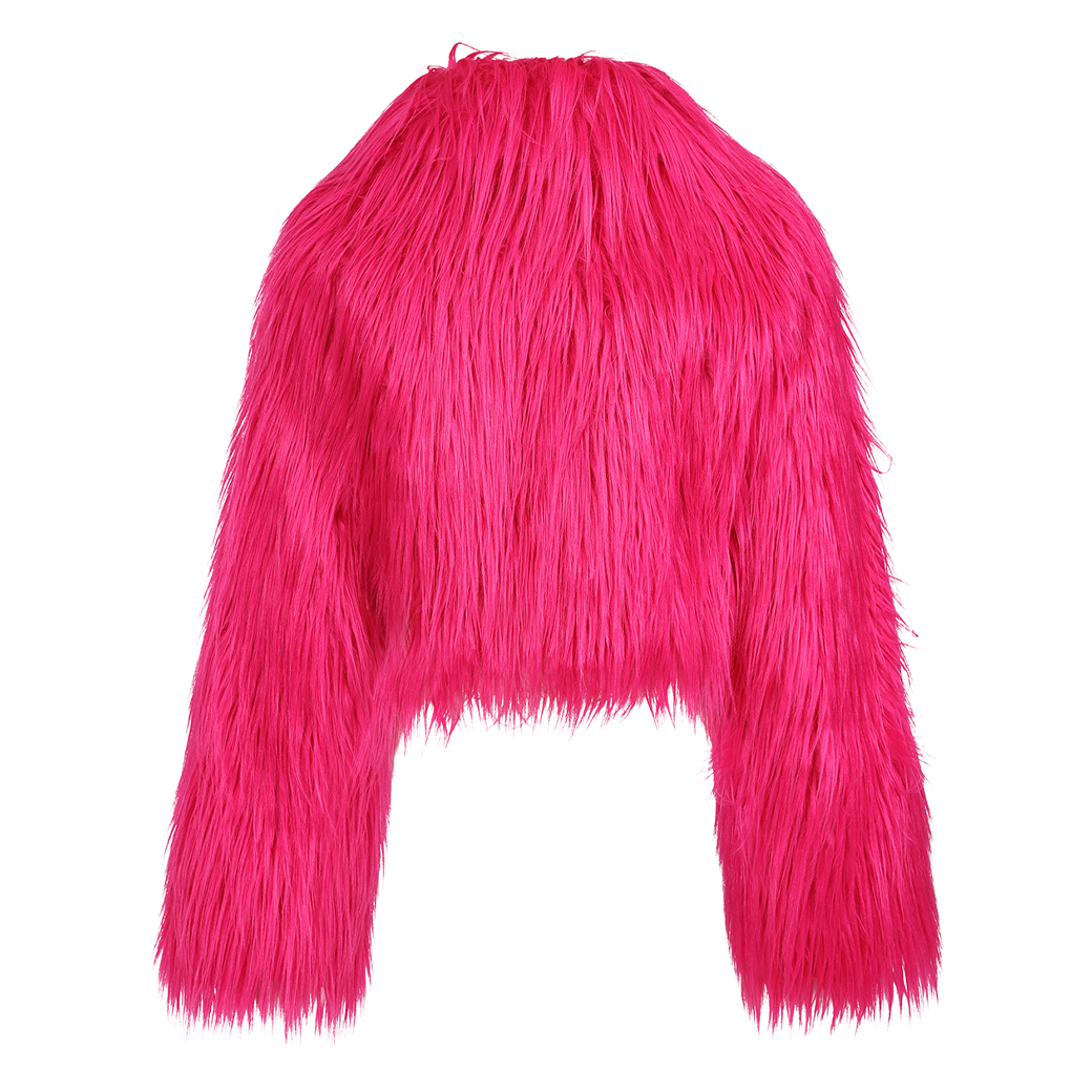 大胆で存在感バツグンなネオンピンクのフェイクファージャケット