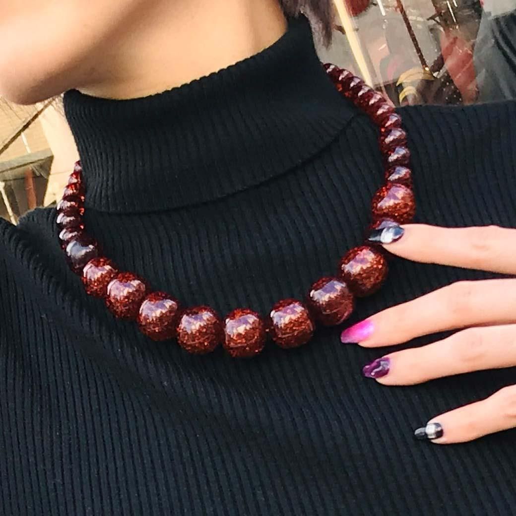 大きさの異なるカラーボールを連ねたヴィンテージスタイルのネックレス