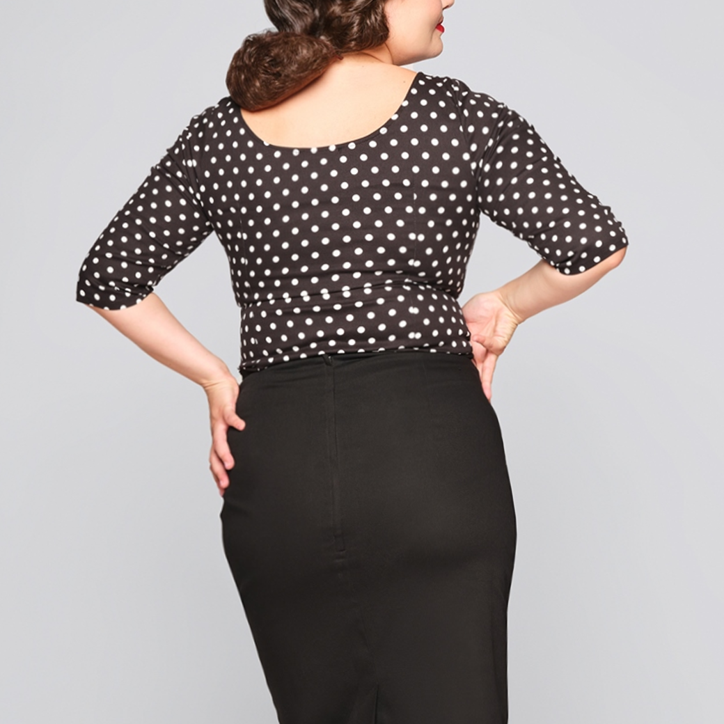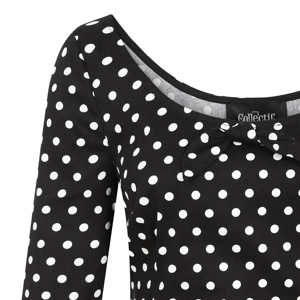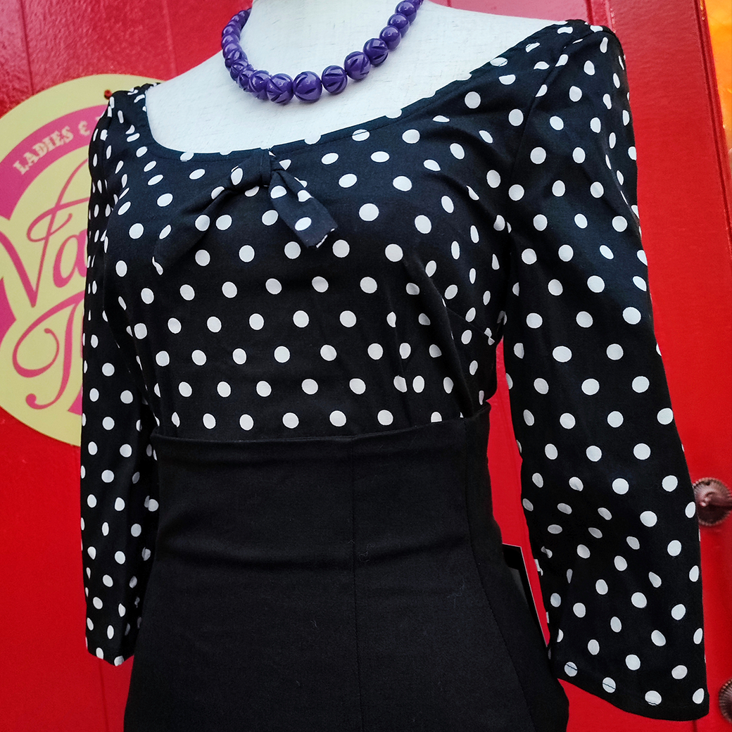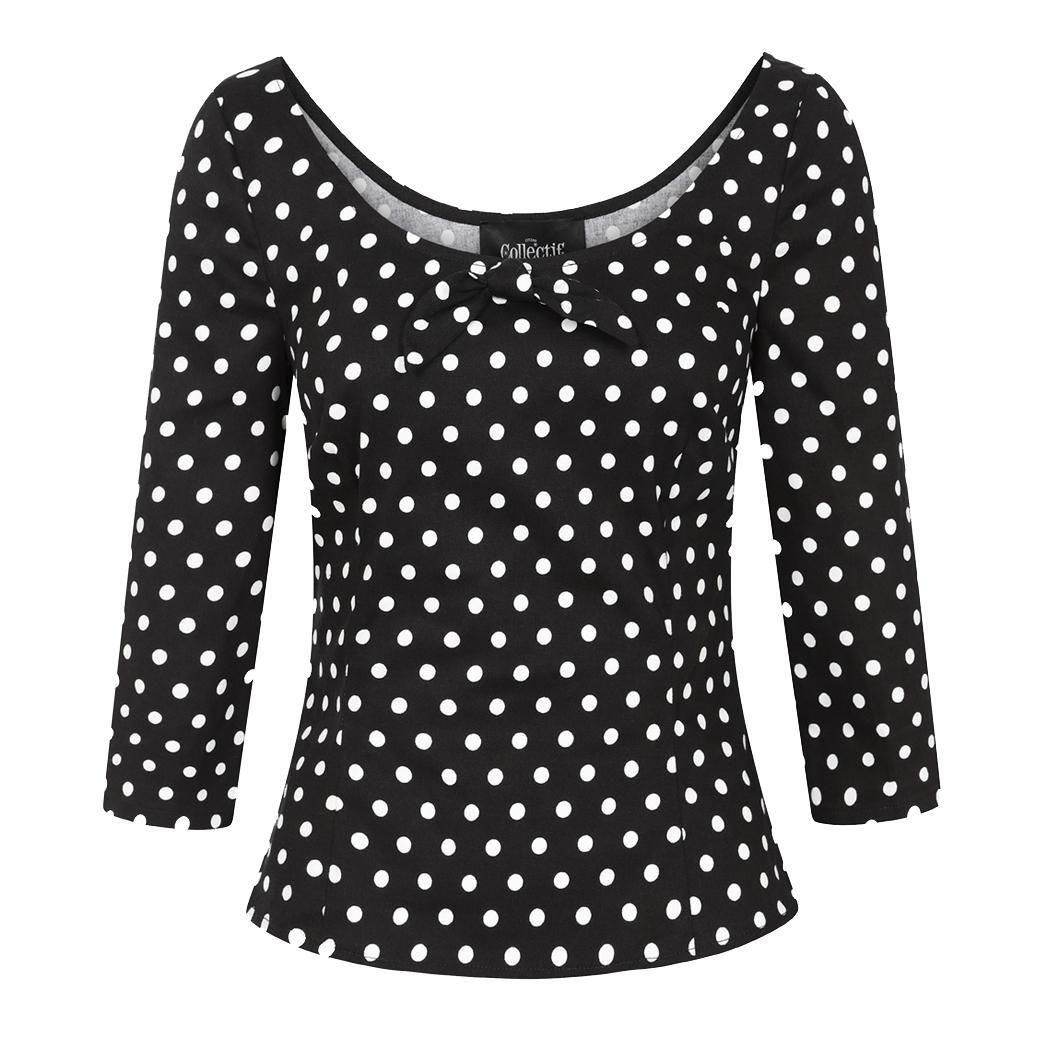【Collectif】50s Suzy Polka Top Black/White UK6 (7-9号程度)5分袖ポルカドットトップス