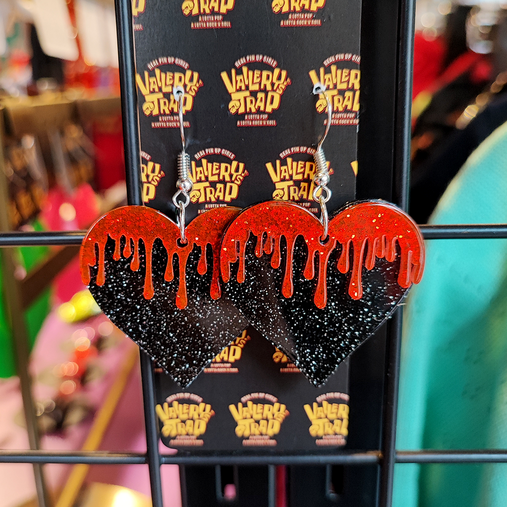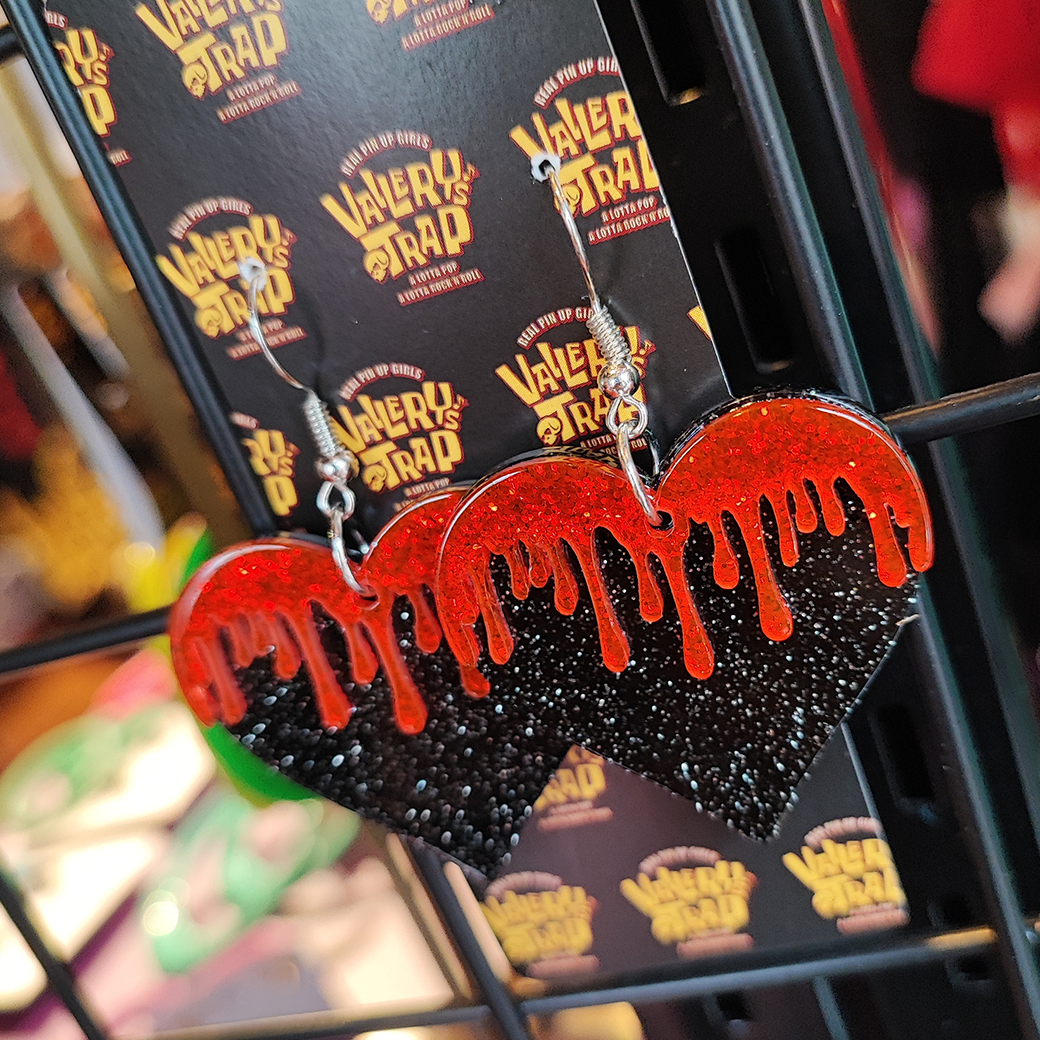 【VALLERY'S SELECT】Bloody Black Heart Earrings グリッターハート ピアス