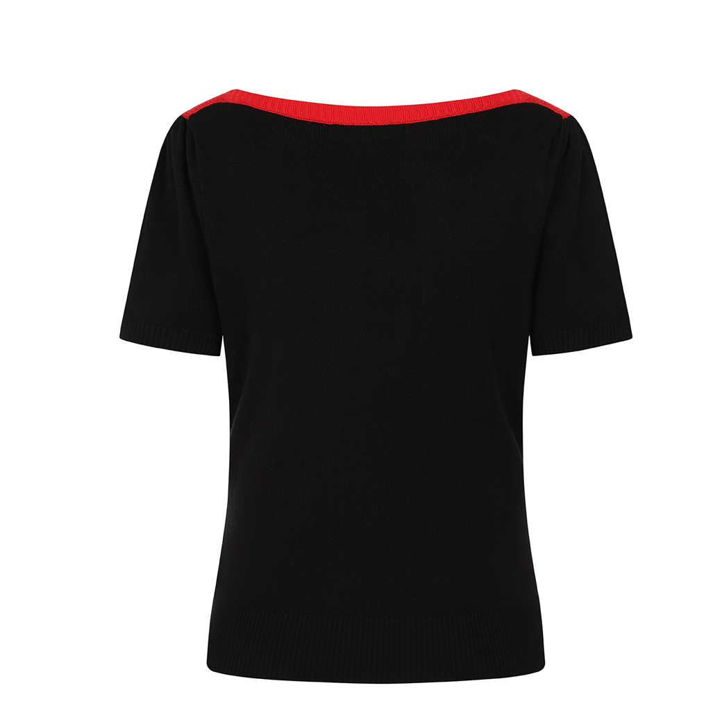 ブラックを基調にアイボリーとレッドのコントラストが映えるデザインで