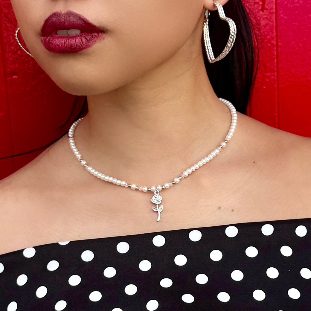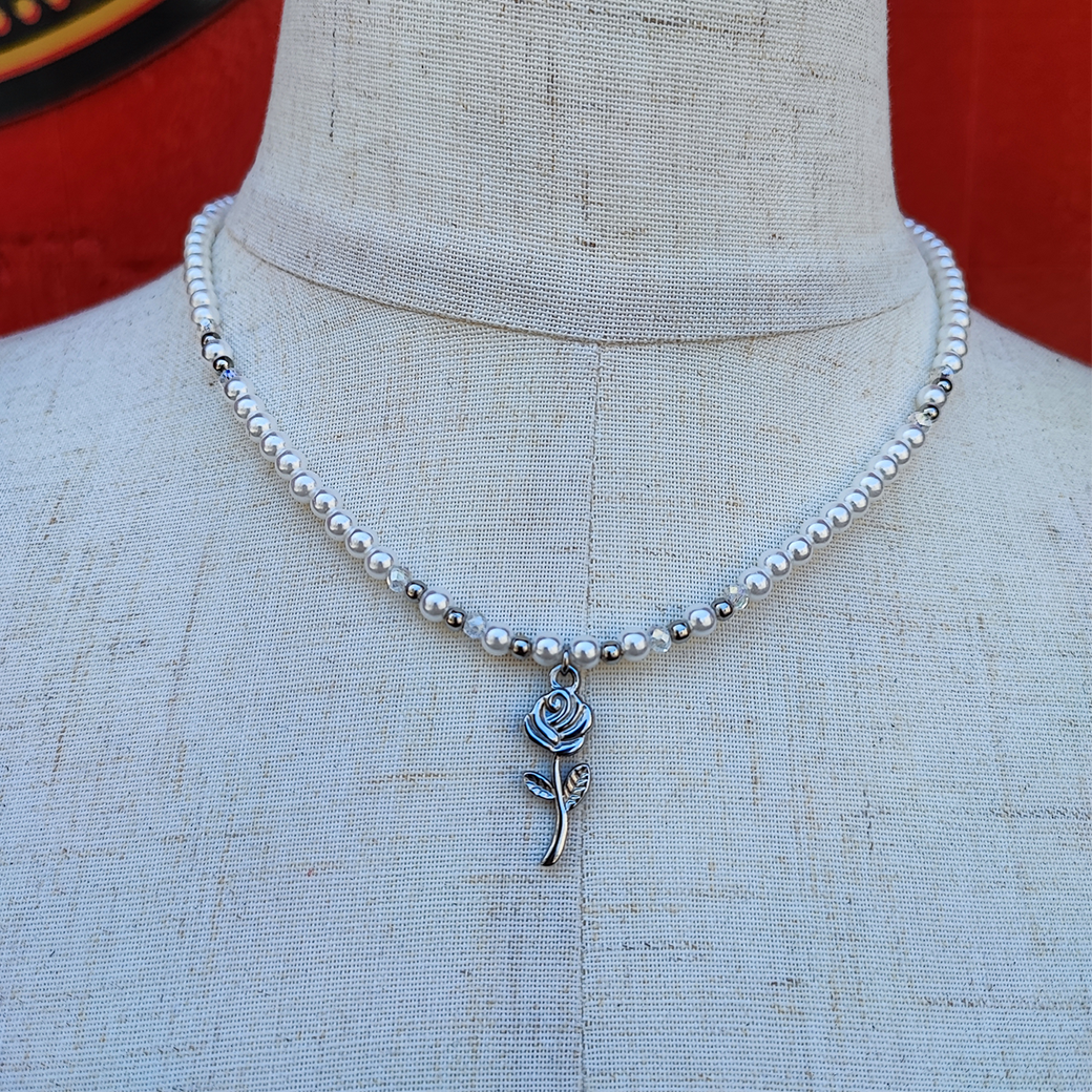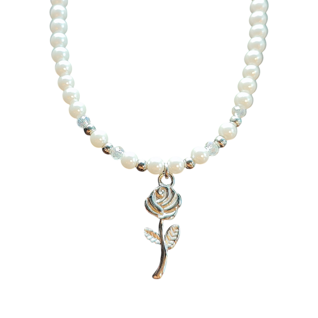 シェルパールを使用したオトナスウィートなローズモチーフのネックレス