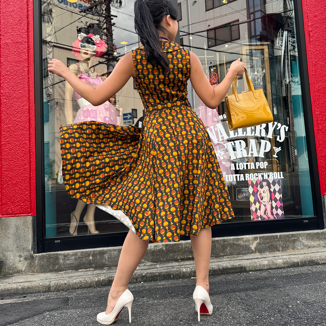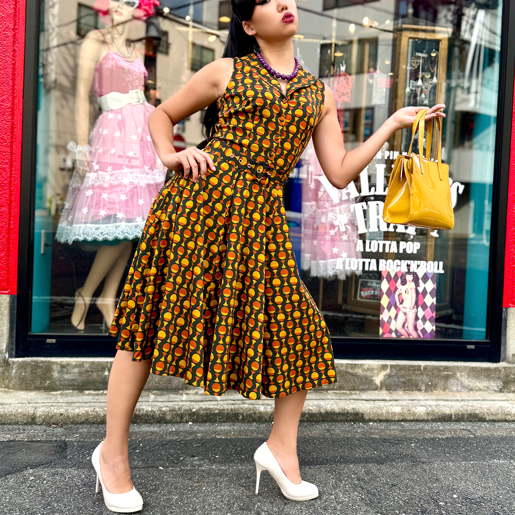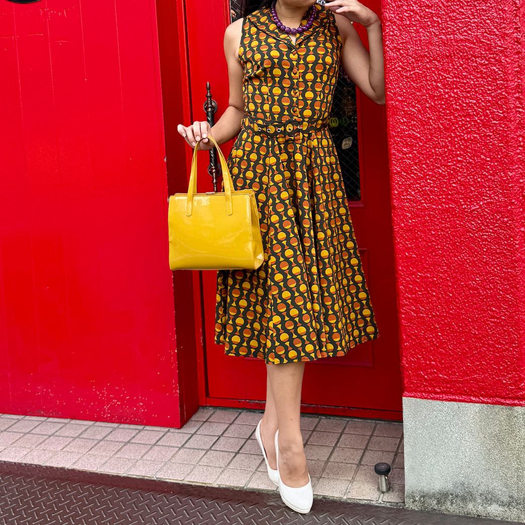 クラシックなスタイルのノースリーブワンピースでヴィンテージアイテムとの相性も良くエレガントな印象です
