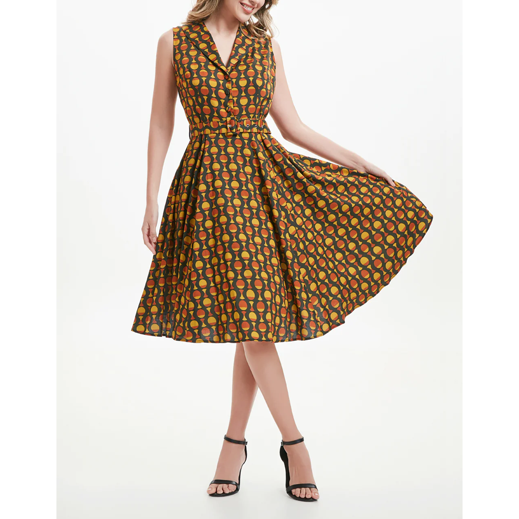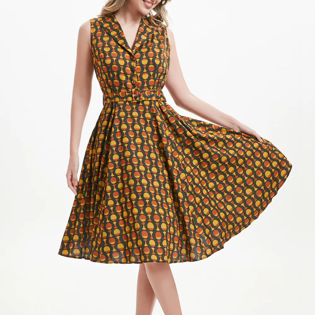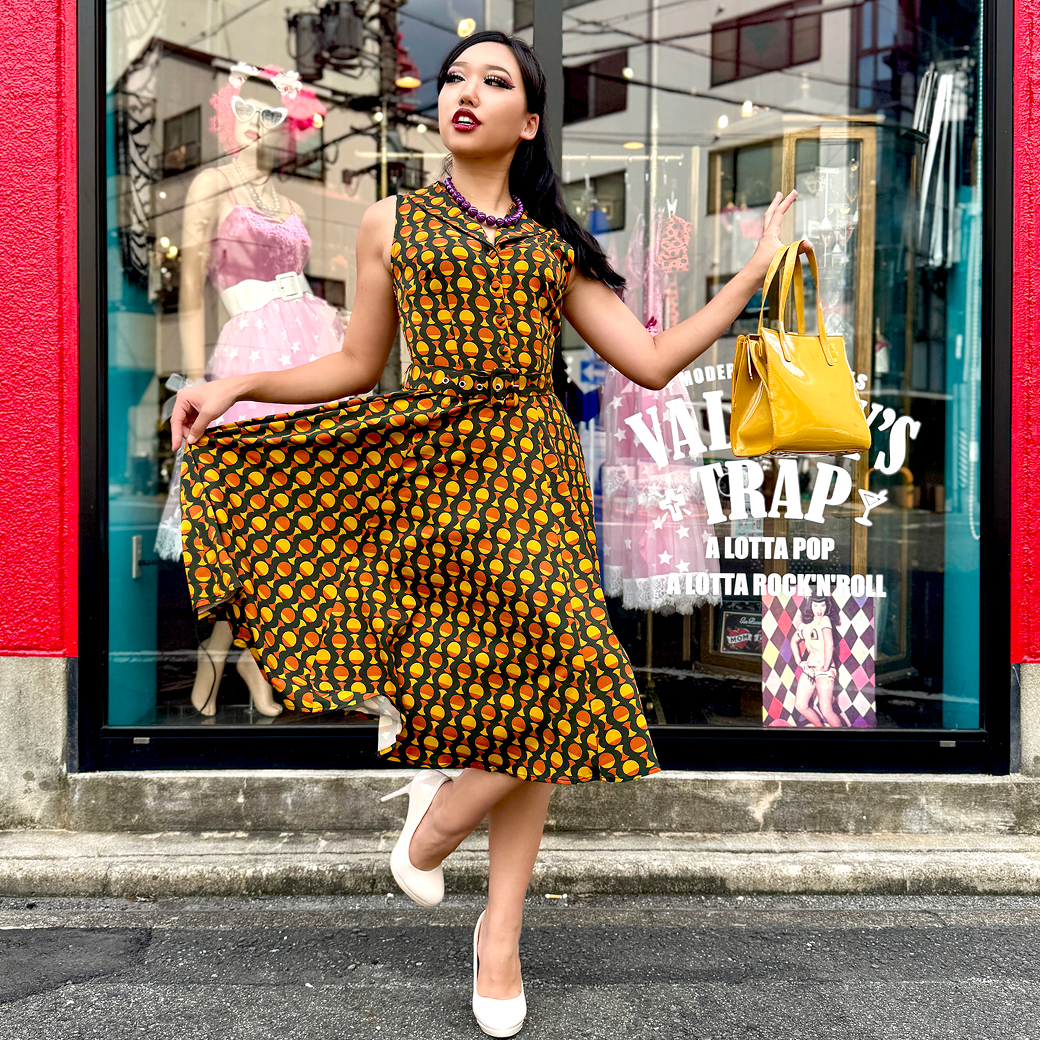 クラシックなスタイルのノースリーブワンピースでヴィンテージアイテムとの相性も良くエレガントな印象です